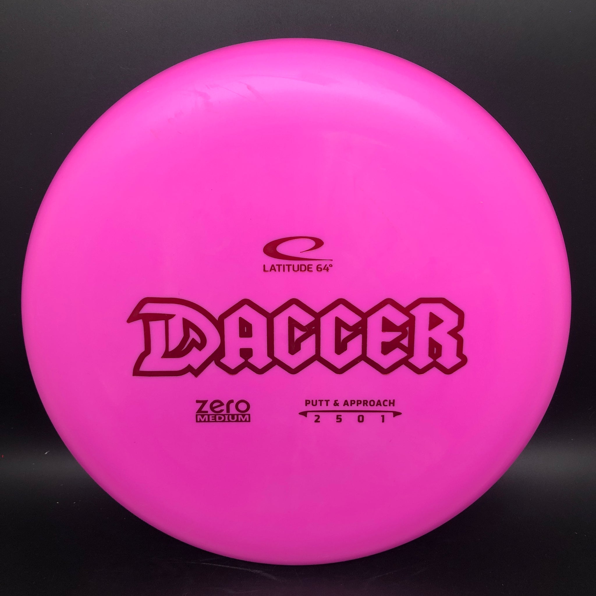 The Dagger is a deep dish putter with a bead. The deep dish means that more air can be trapped underneath the disc, making the Dagger stay longer in the air. The slow and stable flight gives you more control in your short game.Speed: 2 Glide: 5 Turn: 0 Fade: 1