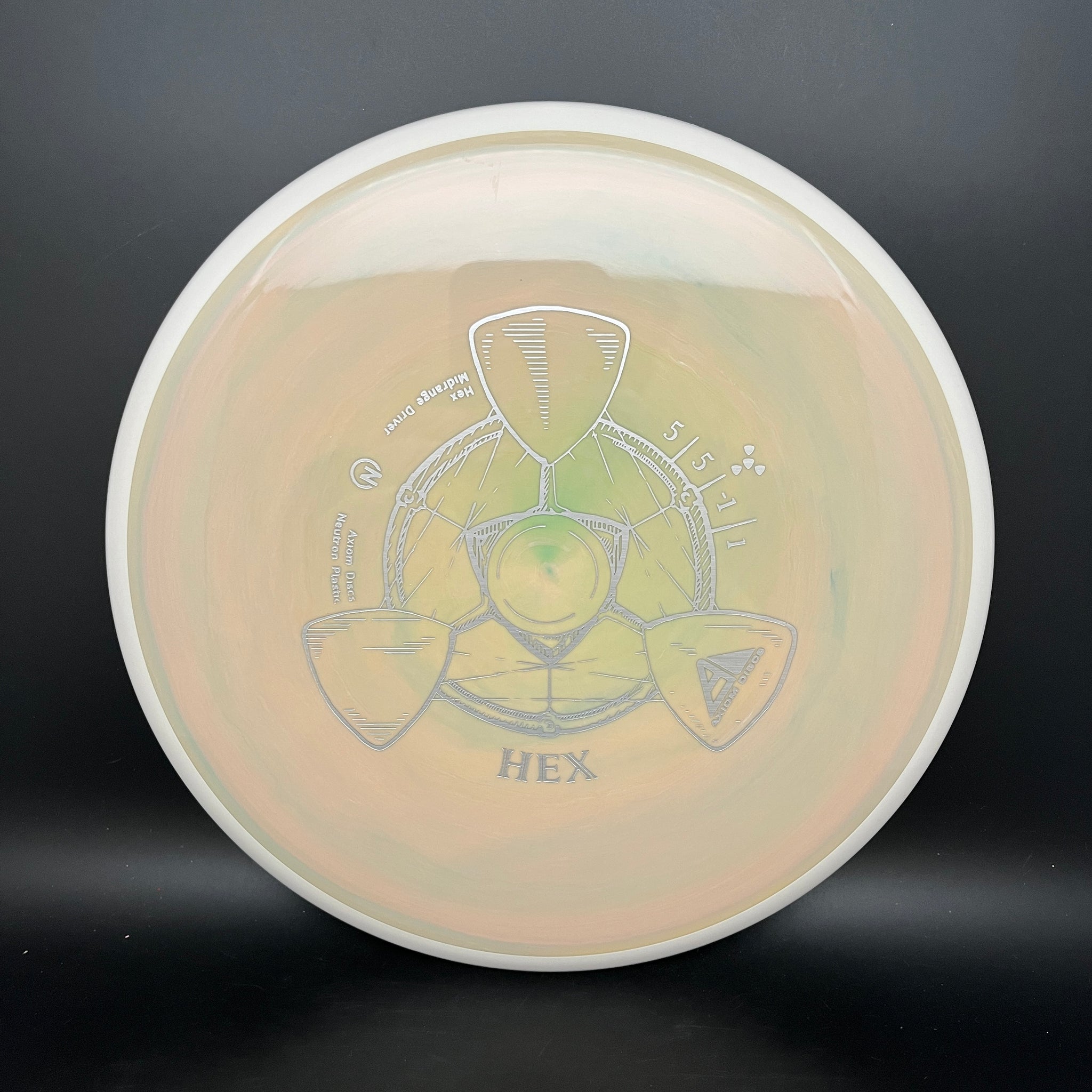 Mesmerizingly straight, with flight numbers of 5/5/-1/1, the Hex will find a place in anyone’s bag as a versatile and reliably straight midrange. At the highest arm speeds, the Hex will produce slightly understable lines from flat, but the 1 fade keeps it from flipping over completely. For lower arm speeds, the Hex has enough turn to make shaping lines a breeze. If you are looking for control in the woods, or simply a versatile line shaper, the Hex is the midrange for you. Available in Neutron plastic to start, add some magic to your game with the Hex!
