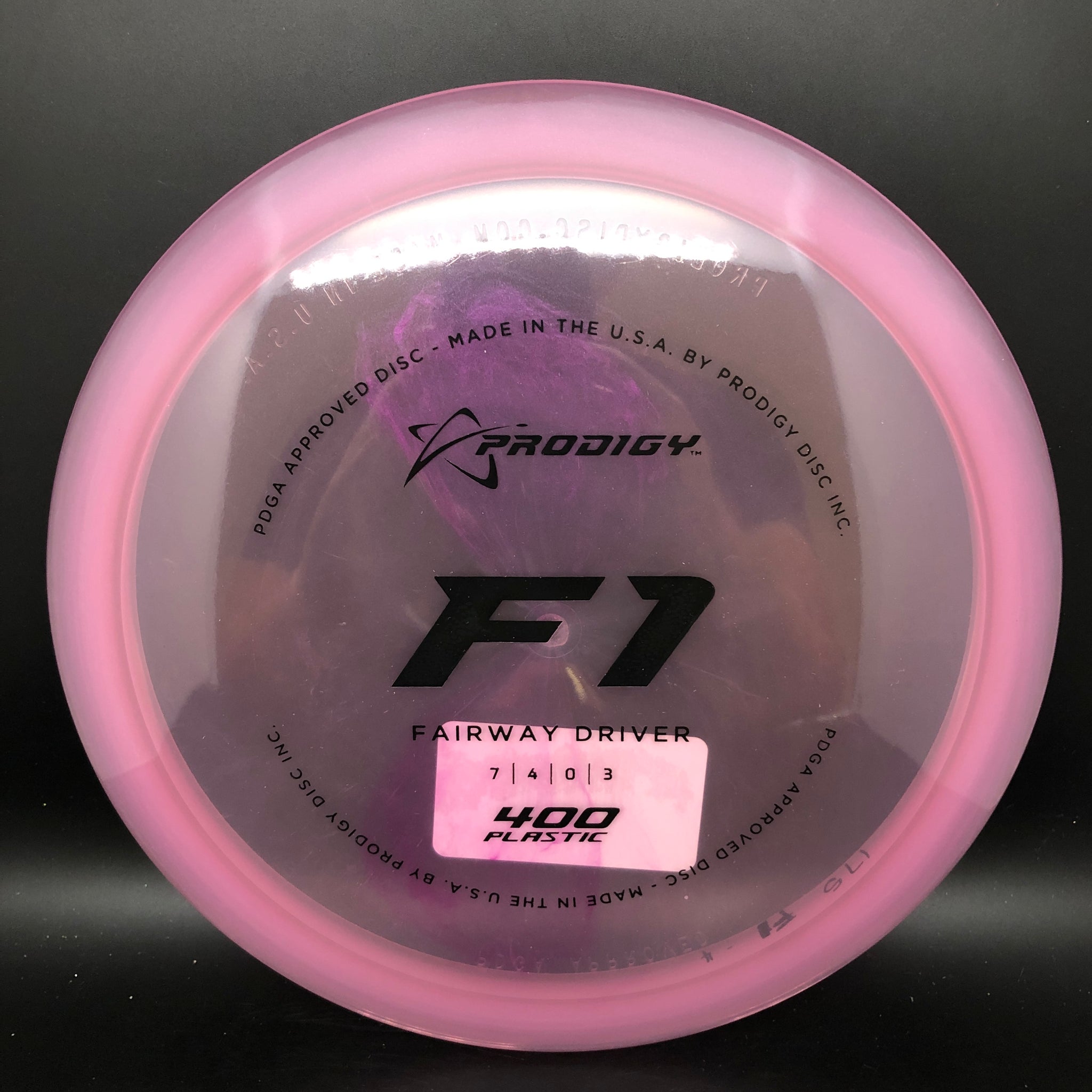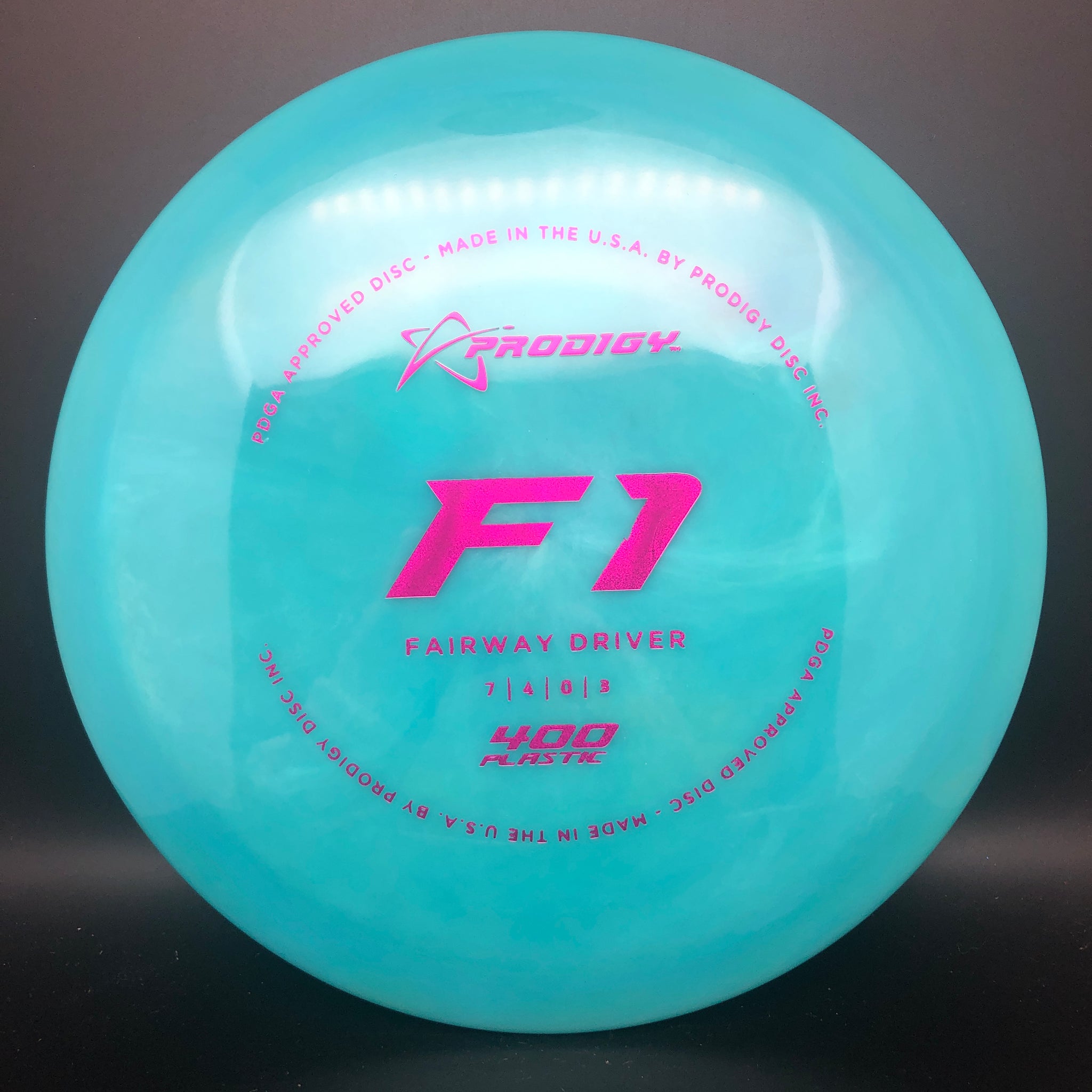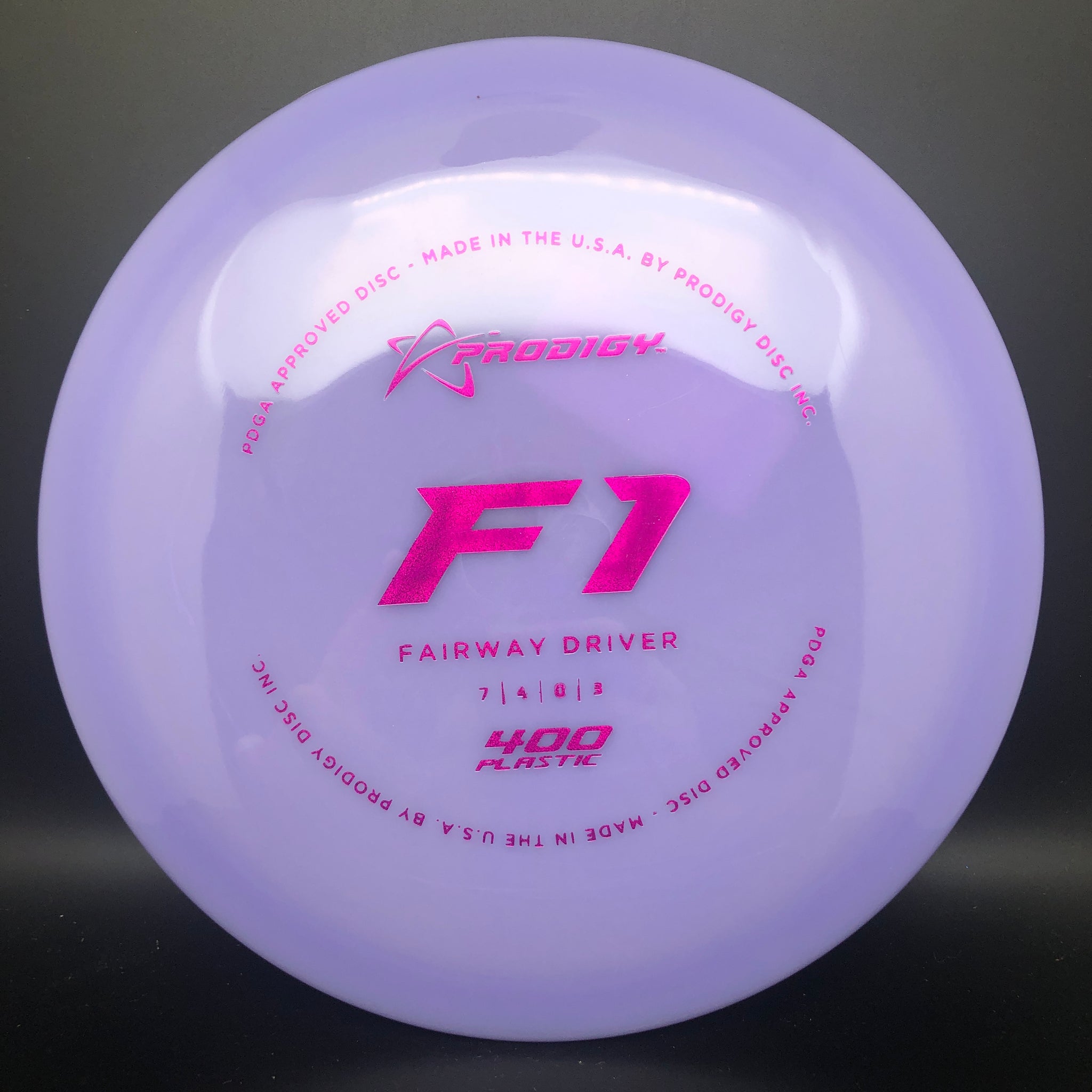 The Prodigy Disc F1 is a medium speed, significantly over stable fairway driver with very predictable and controllable flights and a strong finish. It is designed for power throwers. This disc is also an excellent choice for thumber and tomahawk shots.